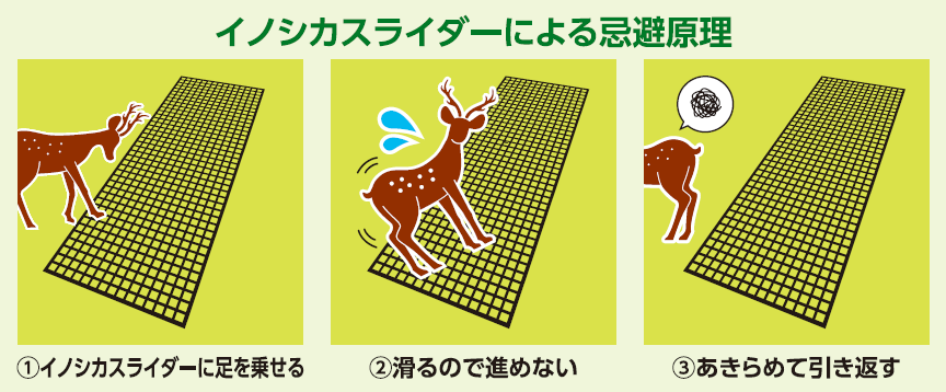 「イノシカスライダー」は、特殊成型した樹脂ネットです。
